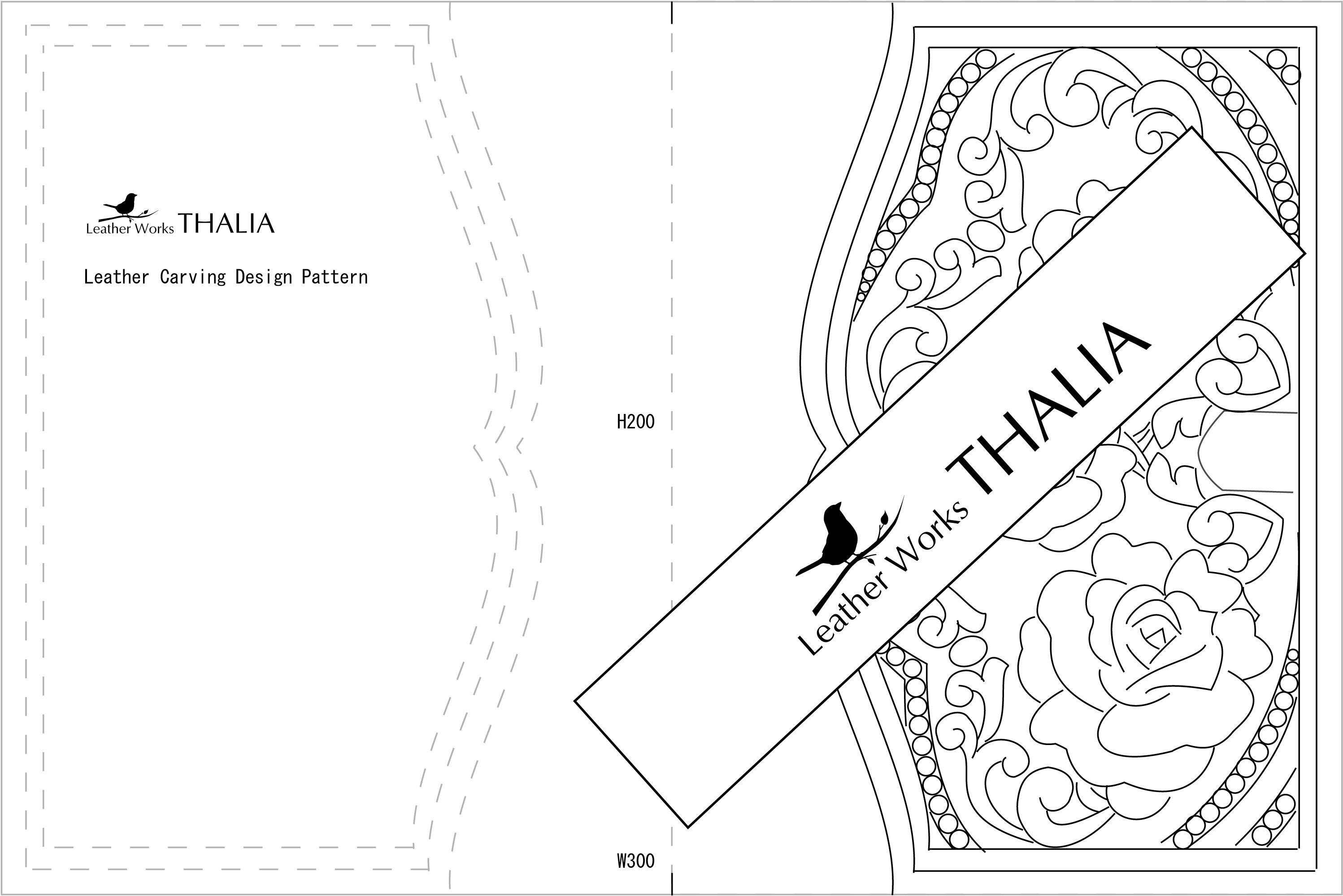 DC-001 レザーカービング 図案 | バラとハートのスクロール | B6 バイブルサイズ ノートカバー用 | PDF