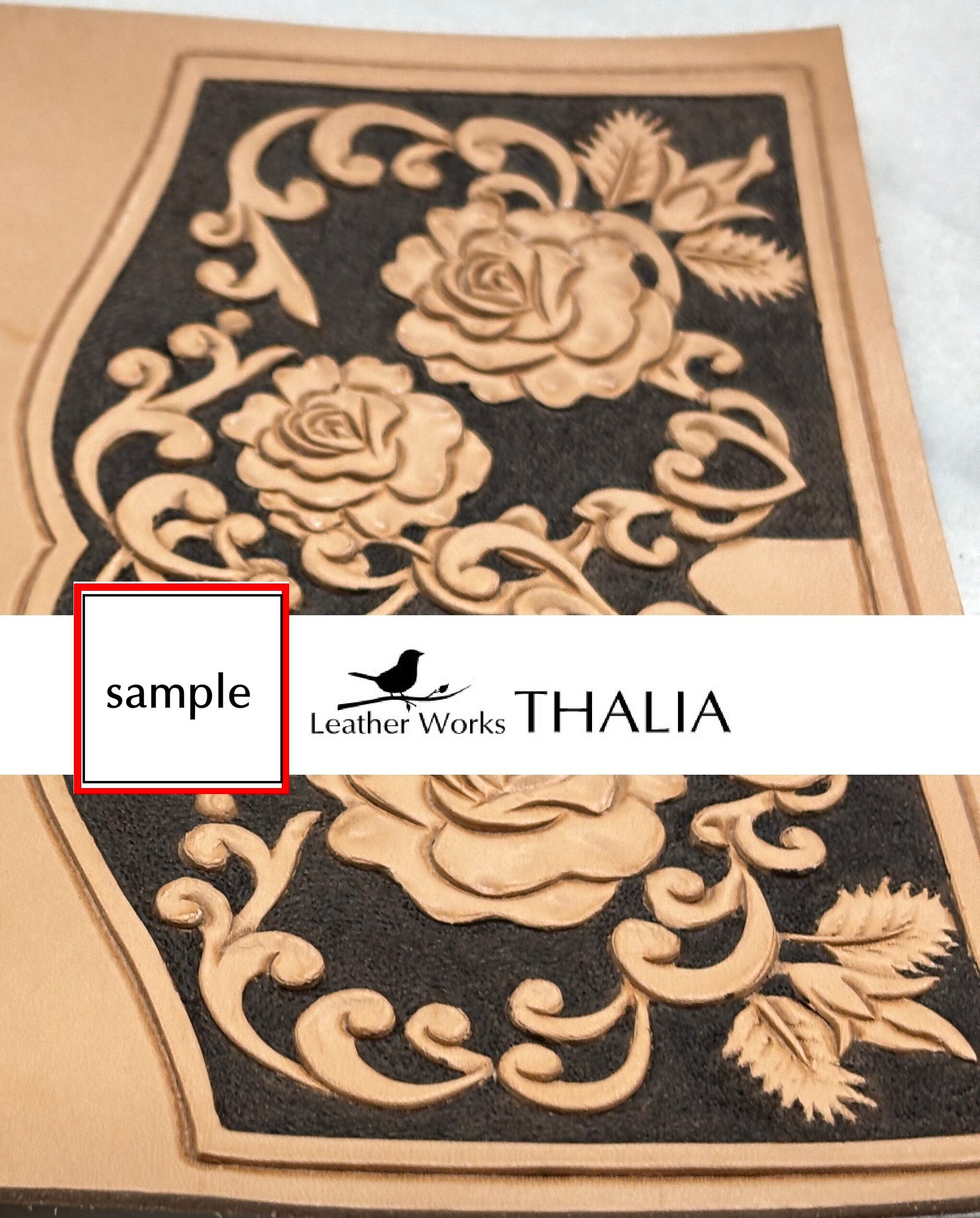 レザーカービング図案『バラとハート』。