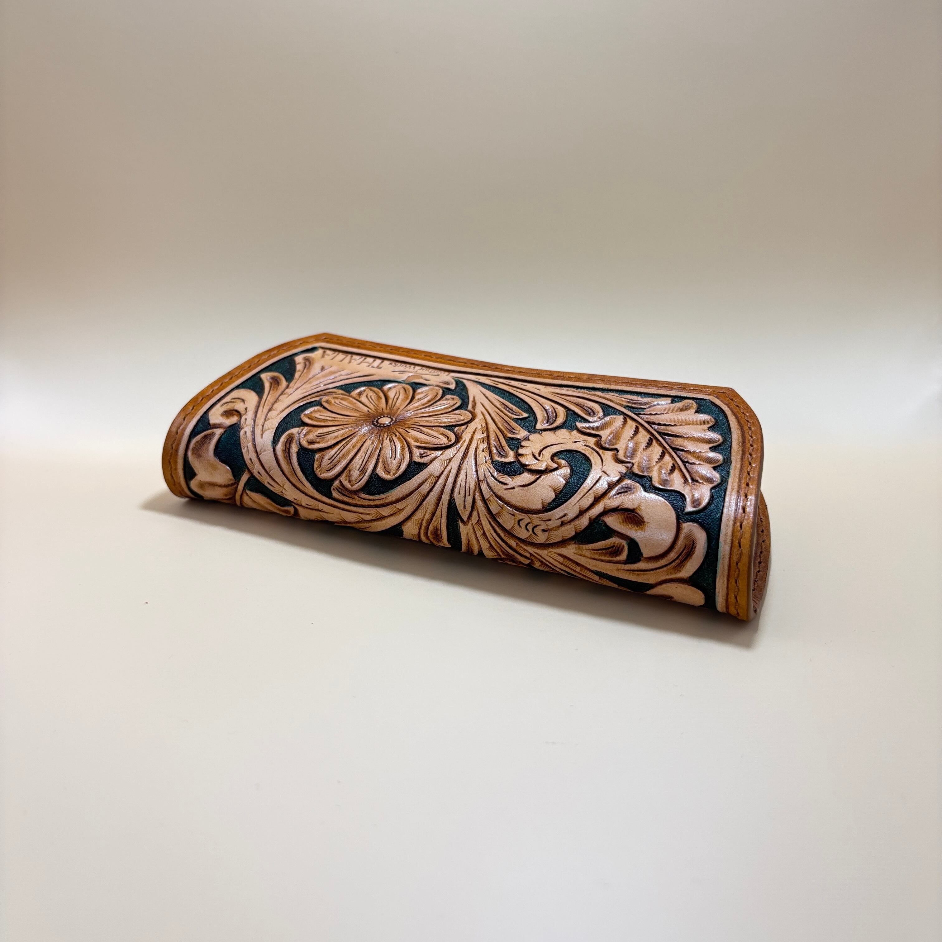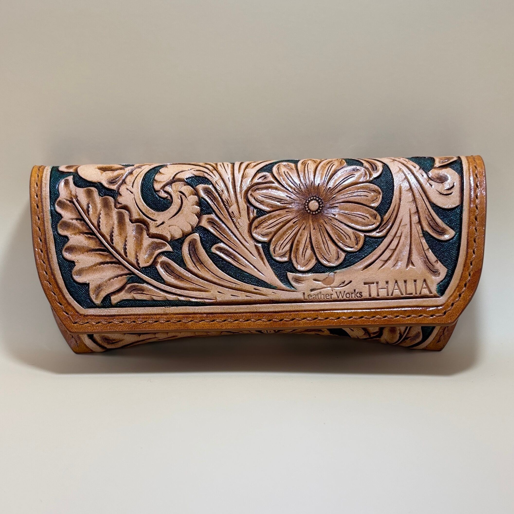 本革/手縫い/レザーカービング/革彫刻/メガネケース/眼鏡ケース/めがねケース/サングラスケース/シェリダンスタイル/ハンドメイド/レザークラフト/一点物/ギフト/プレゼント
