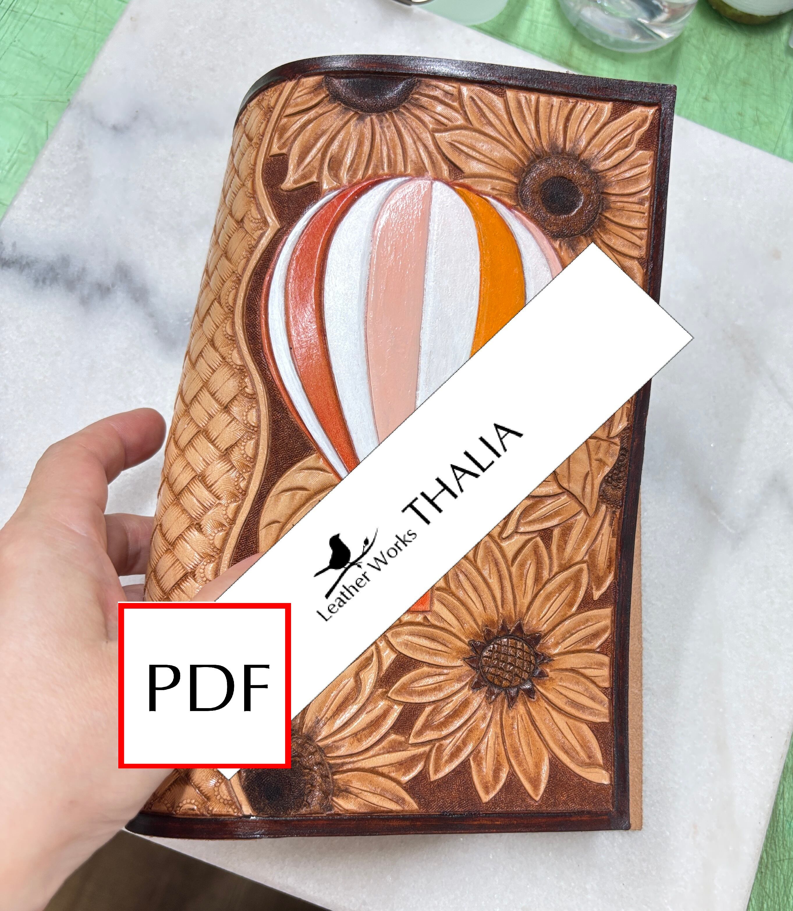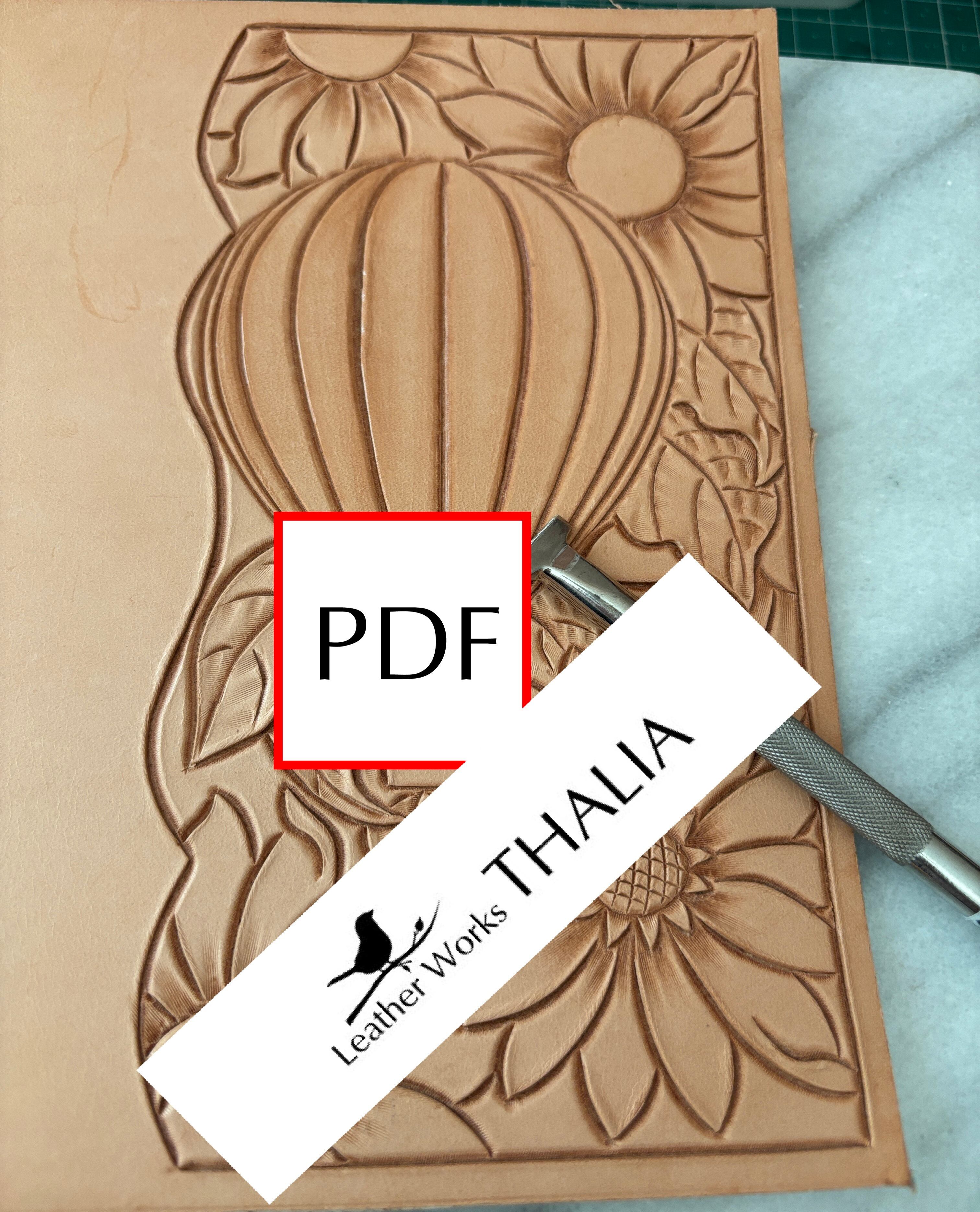 DC-006 レザーカービング図案|ヒマワリと気球 ノートカバー用デザイン型紙 | PDF