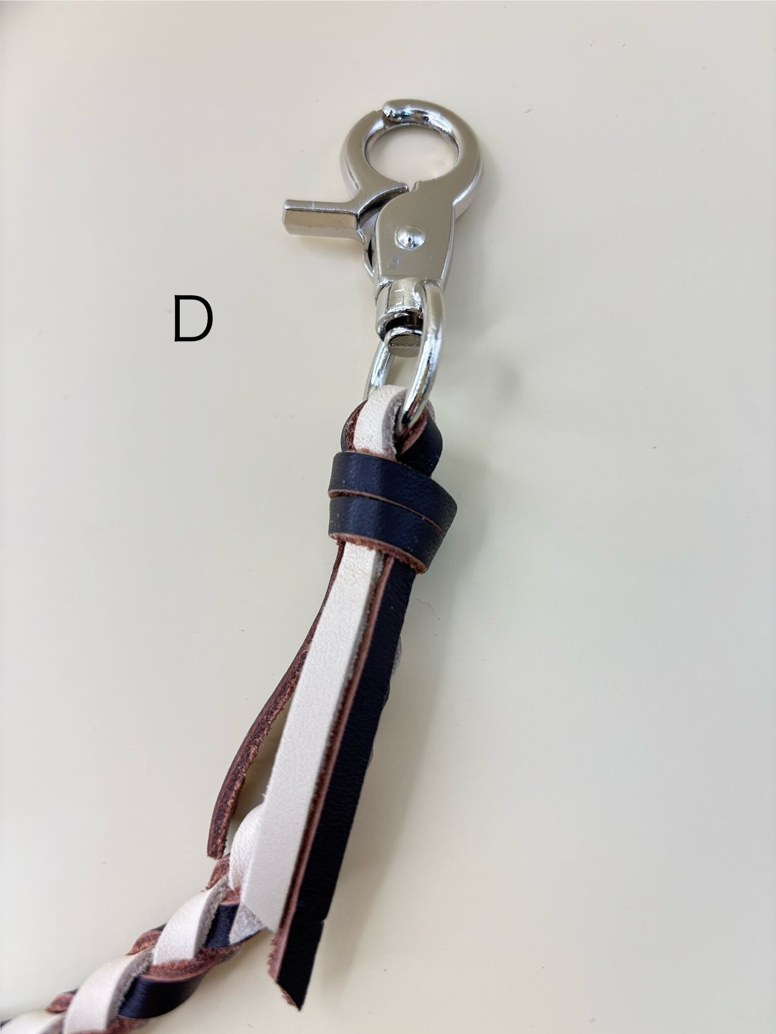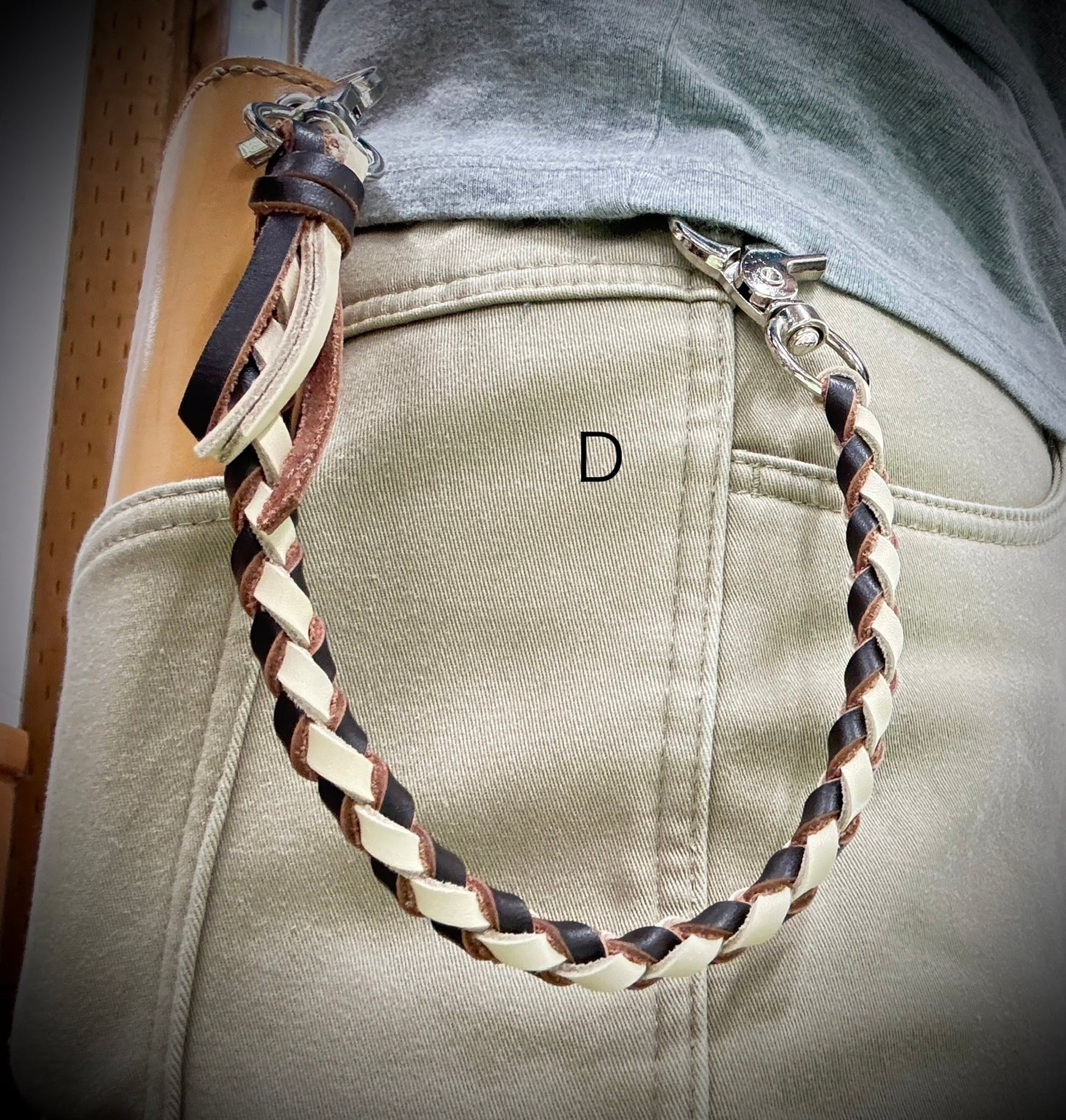 レザー/ウォレットチェーン/革小物/ハンドメイド/手作り/キーホルダー/キーチェーン/バッグチャーム/メンズアクセサリー/レディースアクセサリー/牛革/レザーアクセサリー/ツートンカラー/編み込みレザー/革雑貨/プレゼント/ユニセックス/長財布/ベルト