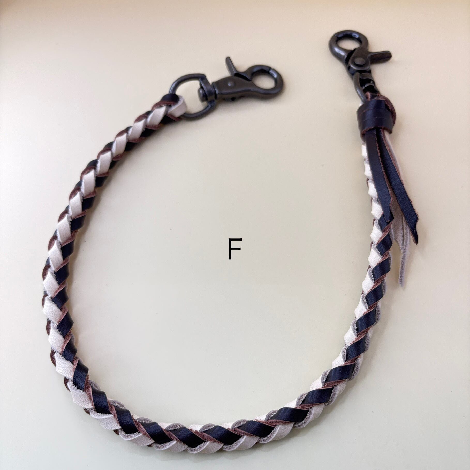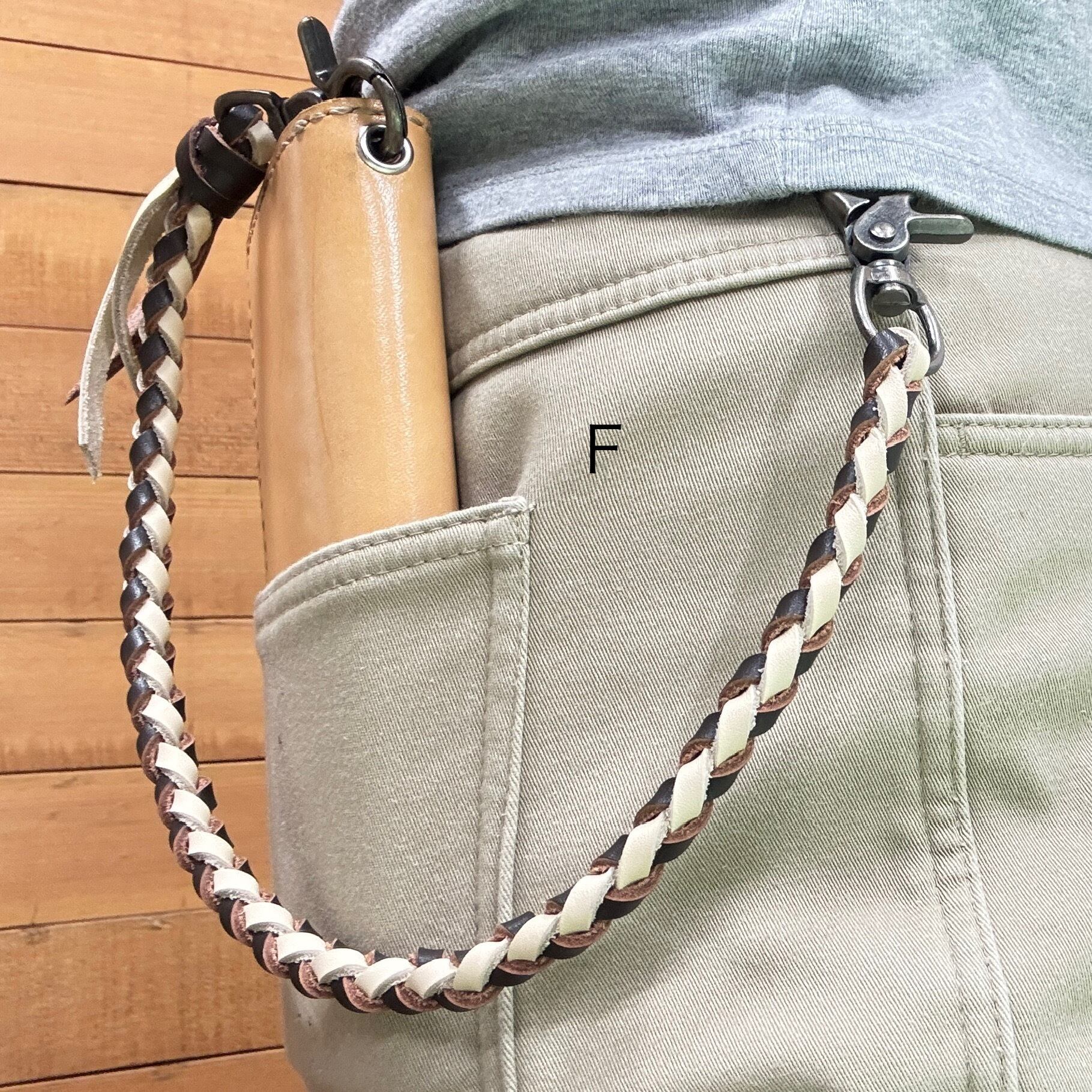 レザー/ウォレットチェーン/革小物/ハンドメイド/手作り/キーホルダー/キーチェーン/バッグチャーム/メンズアクセサリー/レディースアクセサリー/牛革/レザーアクセサリー/ツートンカラー/編み込みレザー/革雑貨/プレゼント/ユニセックス/長財布/ベルト