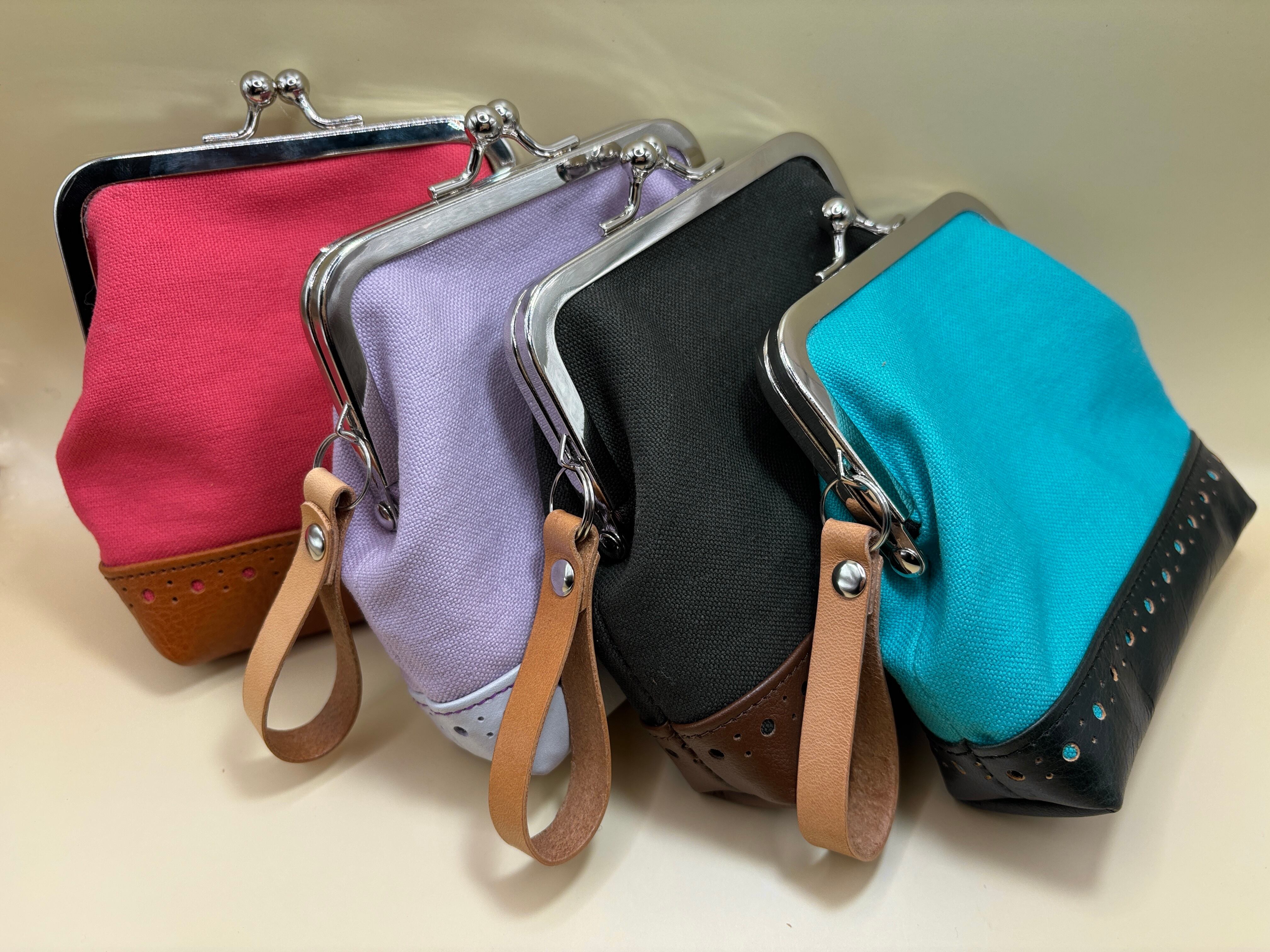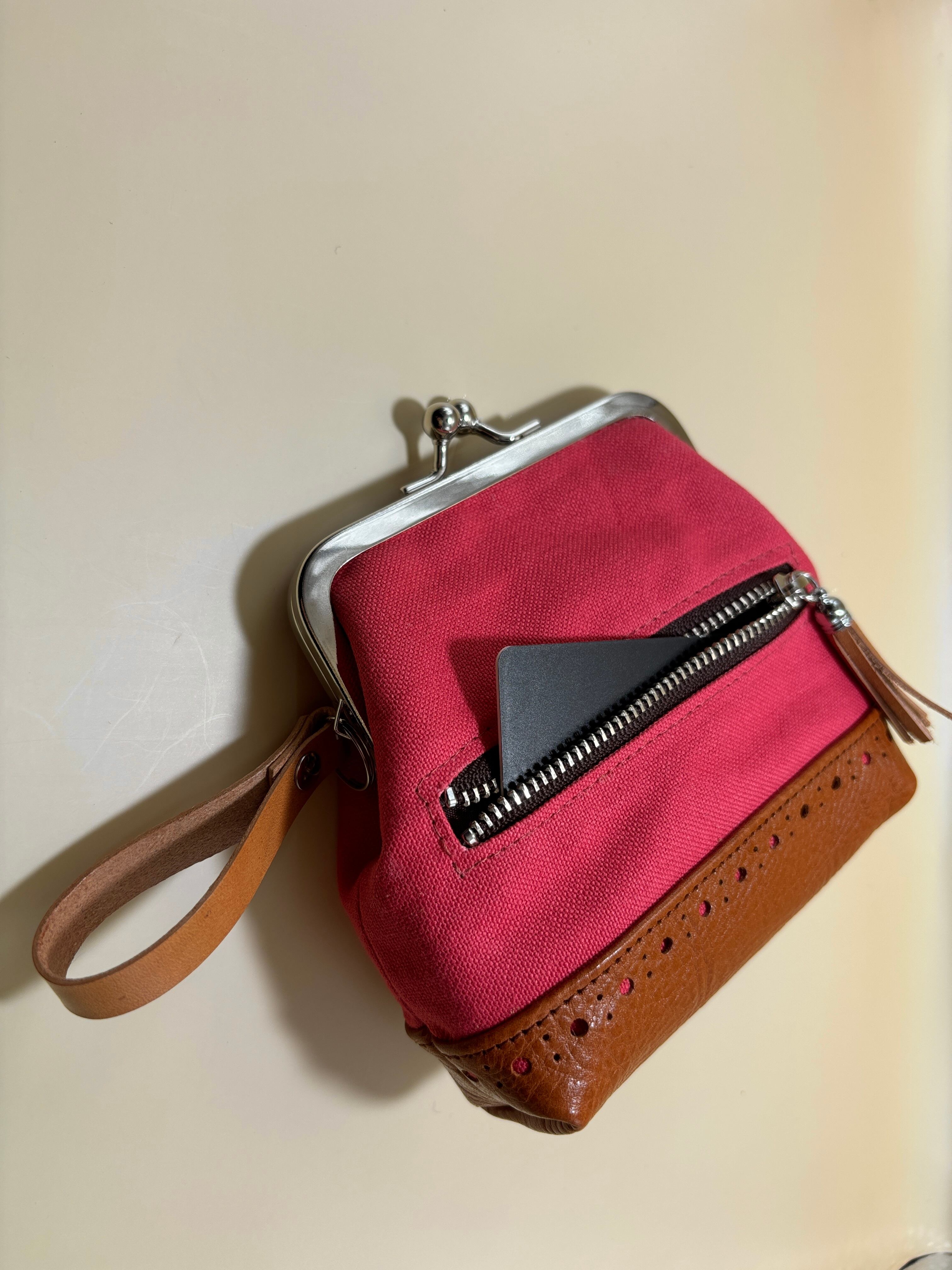 帆布と本革を組み合わせ、カード収納も備えた機能派ミニポーチです。