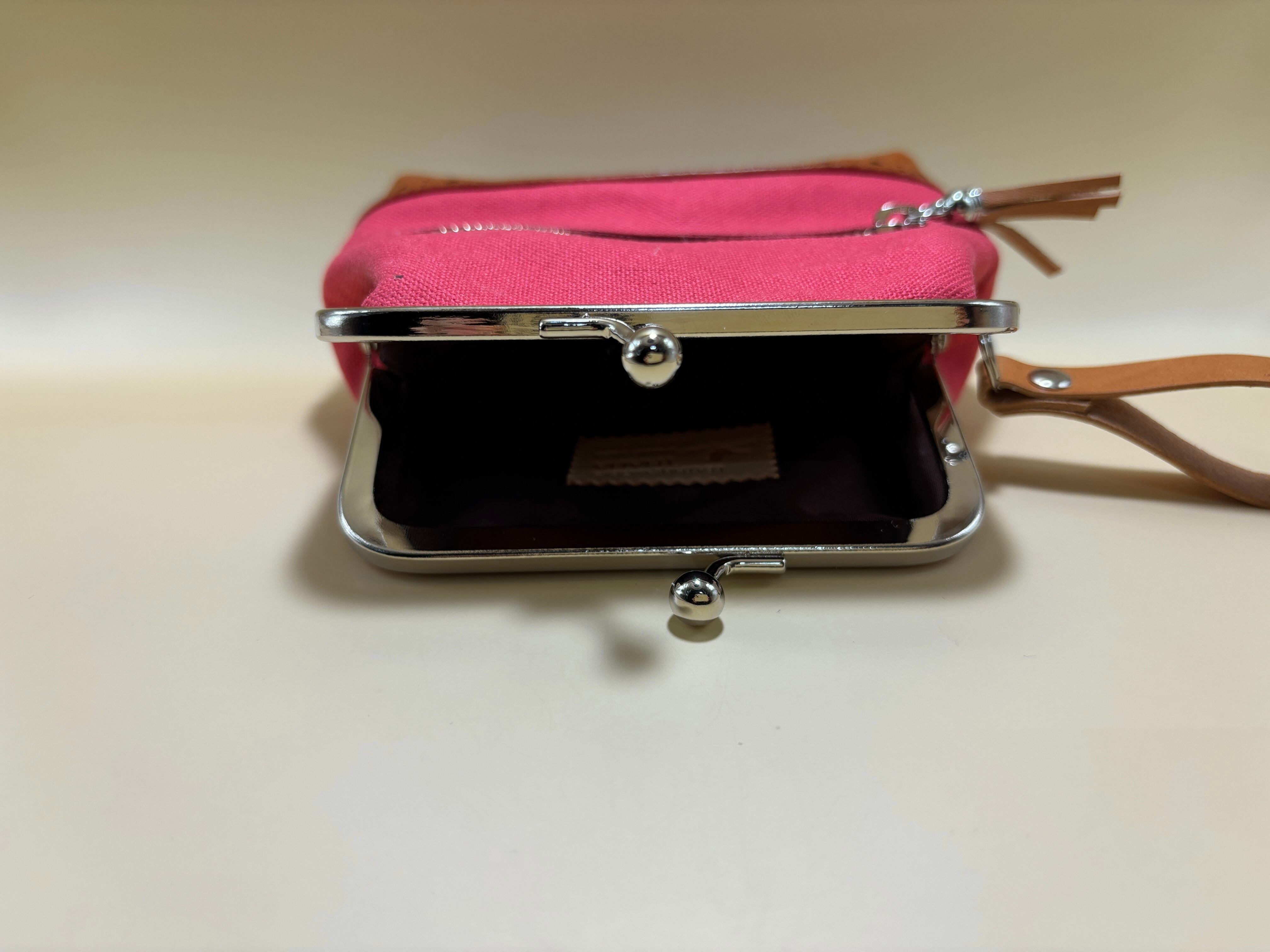 本体は中身が見やすいがま口タイプで、コスメ、小物入れ、サブの財布として、など多用途にお使いいただけます。